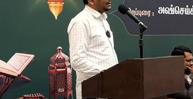 சொற்பொழிவாற்ற இலங்கையிலிருந்து ஜாமிய்யா நளீமியாவின் இயக்குனர் அஷ்ஷெய்க் A.C அகார் முஹம்மது நளீமி அவர்கள் வருகை புரிந்து சொற்பொழிவாற்றினார்கள்.